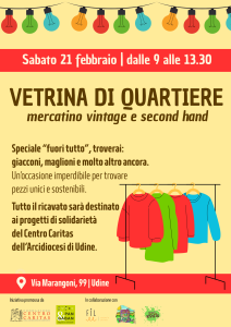 Torna Vetrina di Quartiere, l’amatissimo mercatino vintage e second hand dell’emporio solidale Pan&Gaban. L’appuntamento è per sabato 21 febbraio – dalle 9 alle 13.30, a Udine, al civico 99 di via Marangoni –, in questa occasione davvero speciale si potranno trovare selezionatissimi abiti usati, pezzi unici e originali, in particolare giacconi e maglioni. Il tutto a fronte di un’offerta libera,… leggi >
