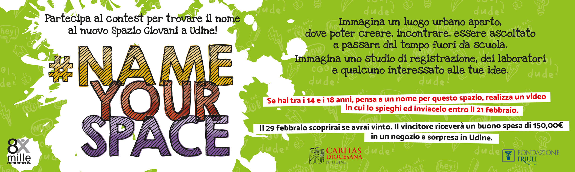 L’Associazione Centro Caritas di Udine promuove #NameYourSpace, un Contest per la scelta del nome al nuovo spazio di aggregazione dedicato ai giovani adolescenti, che verrà inaugurato il 29 febbraio.
