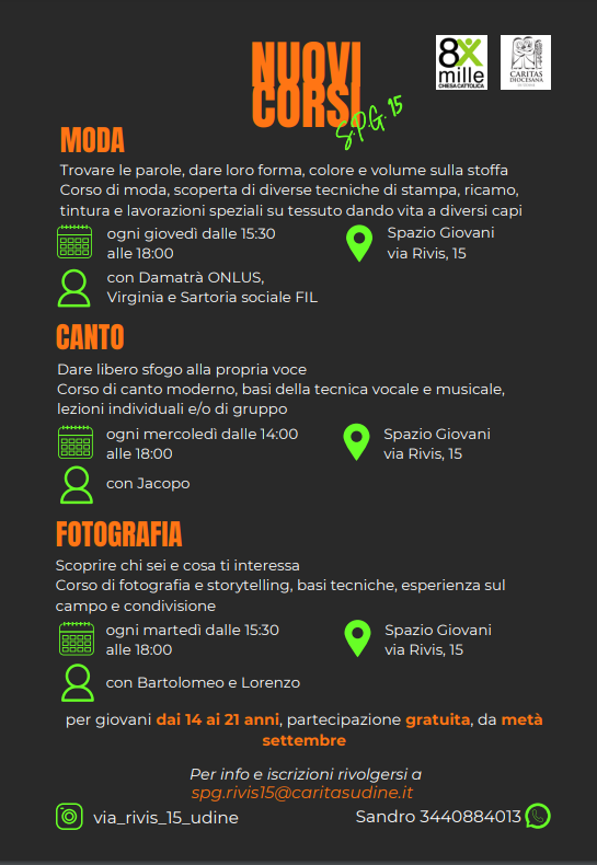 Per informazioni e iscrizioni si consiglia di scrivere a spg.rivis15@caritasudine.it o chiamare il numero 344/0884013.